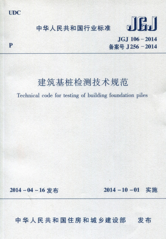 书名:JGJ106-2014 建筑基桩检测技术规范